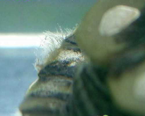 病龟体表(背甲、四肢、颈部等处)长有灰白色絮状菌丝体(腹甲和四肢朝水一面没有),柔软,在水中观察呈絮状,厚而密,影响行动。